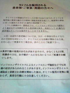 2009年02月01日 タミフルについての注意書きが薬局で配布される